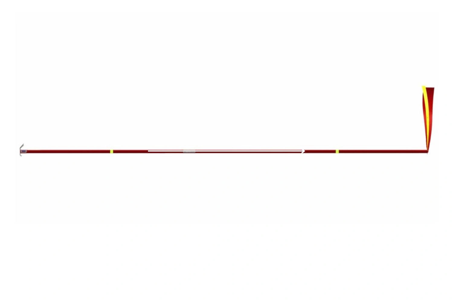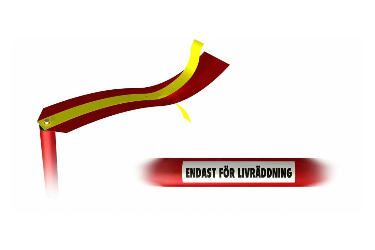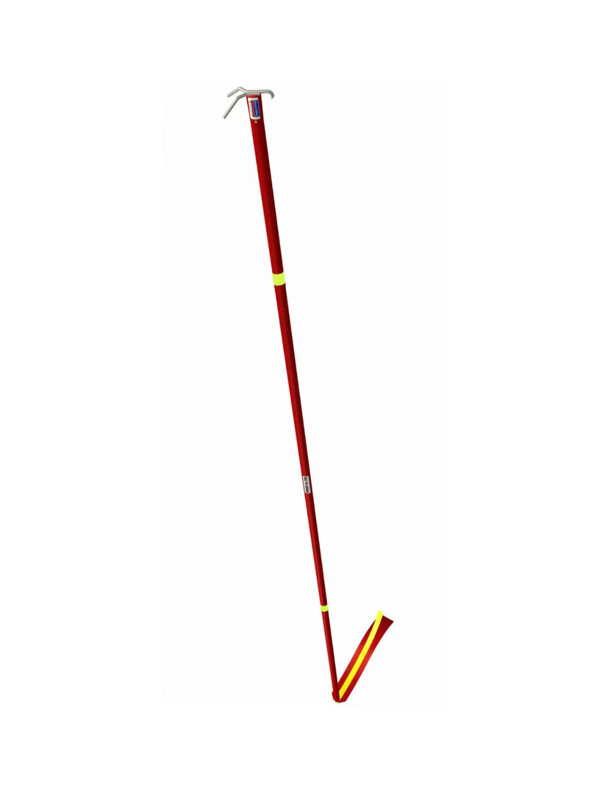With its red color, red/yellow signal flag, decals, and reflectors, the rescue hook is easy to locate and immediately understood as a lifesaving tool.