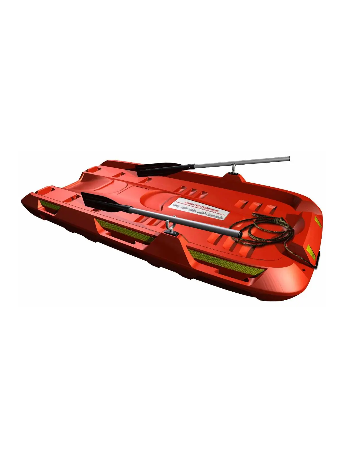The Rescue Raft has been developed to combine functionality, visibility, and sustainability in one robust platform. Made entirely from high-density polyethylene, it is extremely durable, impact-resistant, and corrosion-free, ensuring a long service life with minimal maintenance.